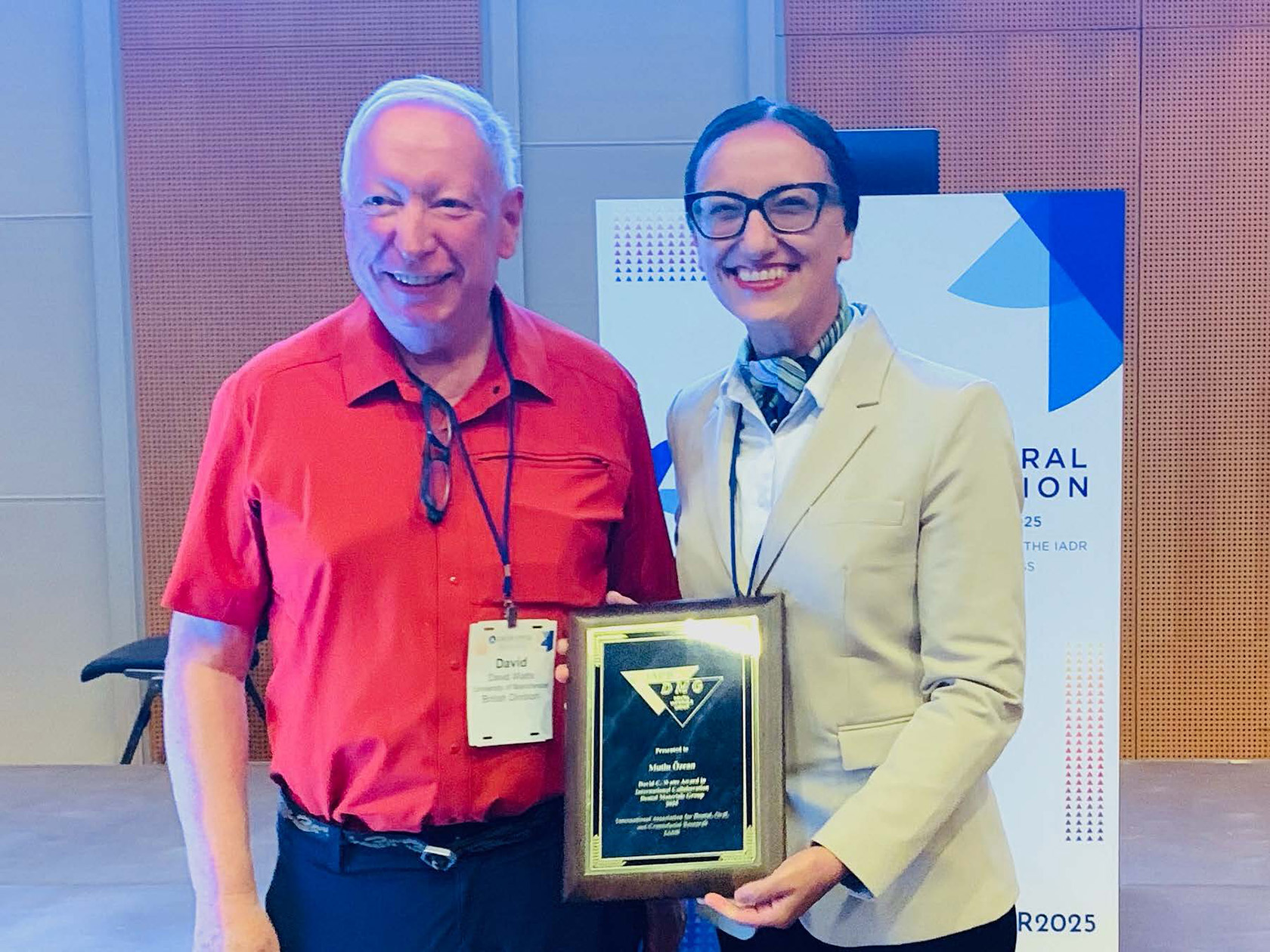 Prof. Dr. Dr. h.c. mult. Mutlu Özcan, PhD, wurde mit dem IADR David C. Watts Award für Exzellenz in der internationalen Zusammenarbeit ausgezeichnet. Der Preis wurde am 26. Juni 2025 in Barcelona, Spanien, verliehen und würdigt ihre herausragenden akademischen Leistungen und ihr Engagement für die globale wissenschaftliche Zusammenarbeit. – Der Preis, benannt nach Prof. David C. Watts, einer führenden Persönlichkeit der Biomaterialwissenschaft, würdigt herausragende Leistungen in der Förderung der internationalen Forschung.